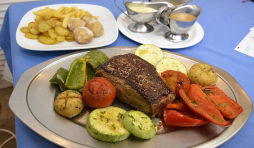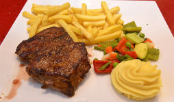 A relatively long and flat cut, flank steak is used in a variety of dishes including London broil . Grain (meat fibre) is very apparent in flank steaks, as it comes from a well-exercised part of the cow, and many chefs cut across the grain to make the meat tenderer. It is frequently used in Asian cuisine, often sold in Chinese markets as "stir-fry beef", and is served in French cuisine as an at most medium-rare steak.